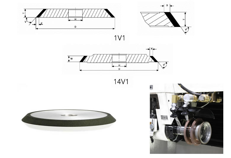 | FEPA Shape | Dmm | Tmm | Xmm | V° | Hmm | Grit size | Con. | Grit size |