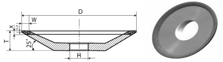 | FEPA Shape | D, mm | W, mm | X,mm | T, mm | H,mm | Grit |